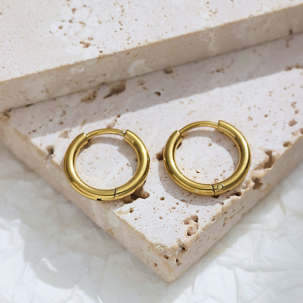 Crafted in sleek gold plating over surgical-grade stainless steel, these Feather Huggies form a continuous, ultra-slim loop that gently hugs your earlobe. Their minimalist silhouette delivers a modern statement—effortlessly sparkling solo or stacking beautifully for a curated ear party. Exceptionally lightweight and comfortable, they transition seamlessly from desk to dinner with timeless elegance.